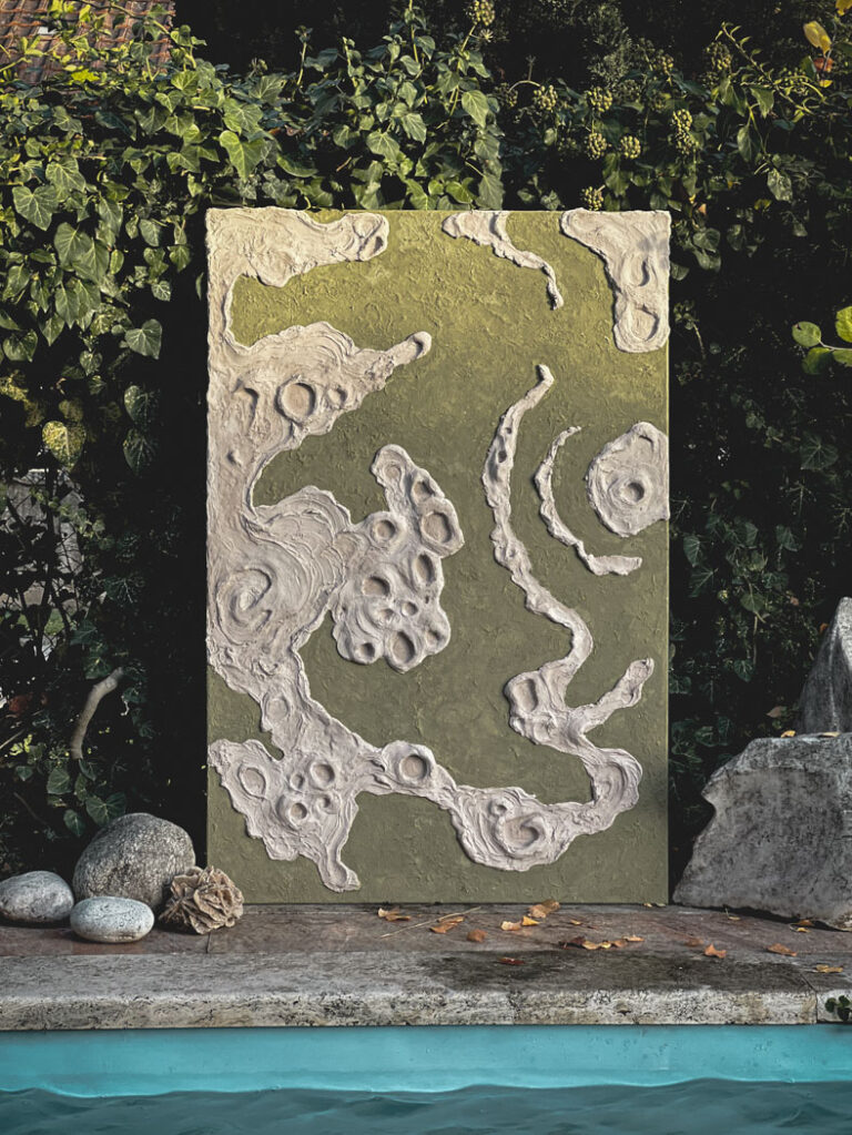 Its relief looks like an intangible movement rising to the surface from the roots, to remind us that everything we are springs from it.